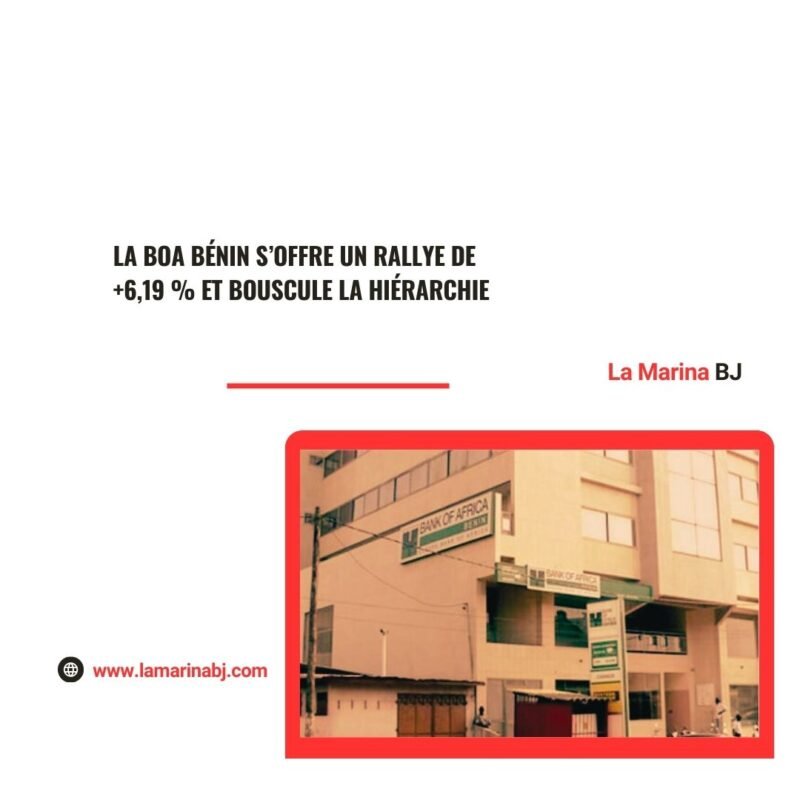 Bourse, La Marina BJ – Alors que le marché régional de la Bourse Régionale des Valeurs Mobilières (BRVM) entame sa deuxième semaine pleine de l’année, la Bank of Africa Bénin (BOAB) aimante tous les regards. En signant l’une des plus fortes hausses de la séance du mardi 13 janvier 2026, la filiale béninoise du groupe marocain BMCE confirme son statut de valeur de croissance et rattrape son retard sur les ténors de la cote.