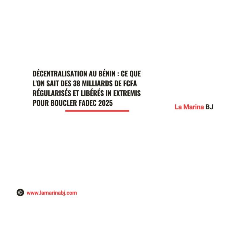 Finances locales, La Marina BJ – Par la signature de deux arrêtés interministériels le 31 décembre 2025, le gouvernement béninois a procédé à une régularisation massive et à la répartition des derniers reliquats du Fonds d’Appui au Développement des Communes (FADeC) au titre dudit exercice. Entre maintien des services de base et bonus pour les zones vulnérables, en savoir plus sur la bouffée d’oxygène financière de 38 milliards de FCFA.